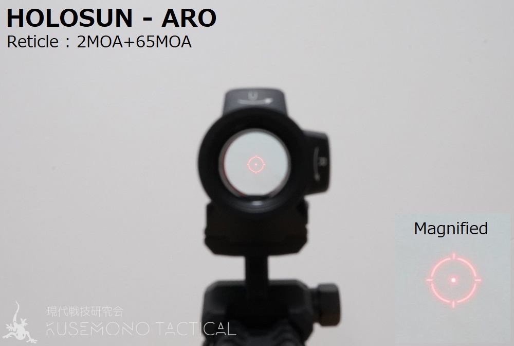 ●マルチレティクルモデルであったとしても2MOAのみに切り替え可能。他のホロサン製品のように65MOAサークルのみへの切り替えはできない。