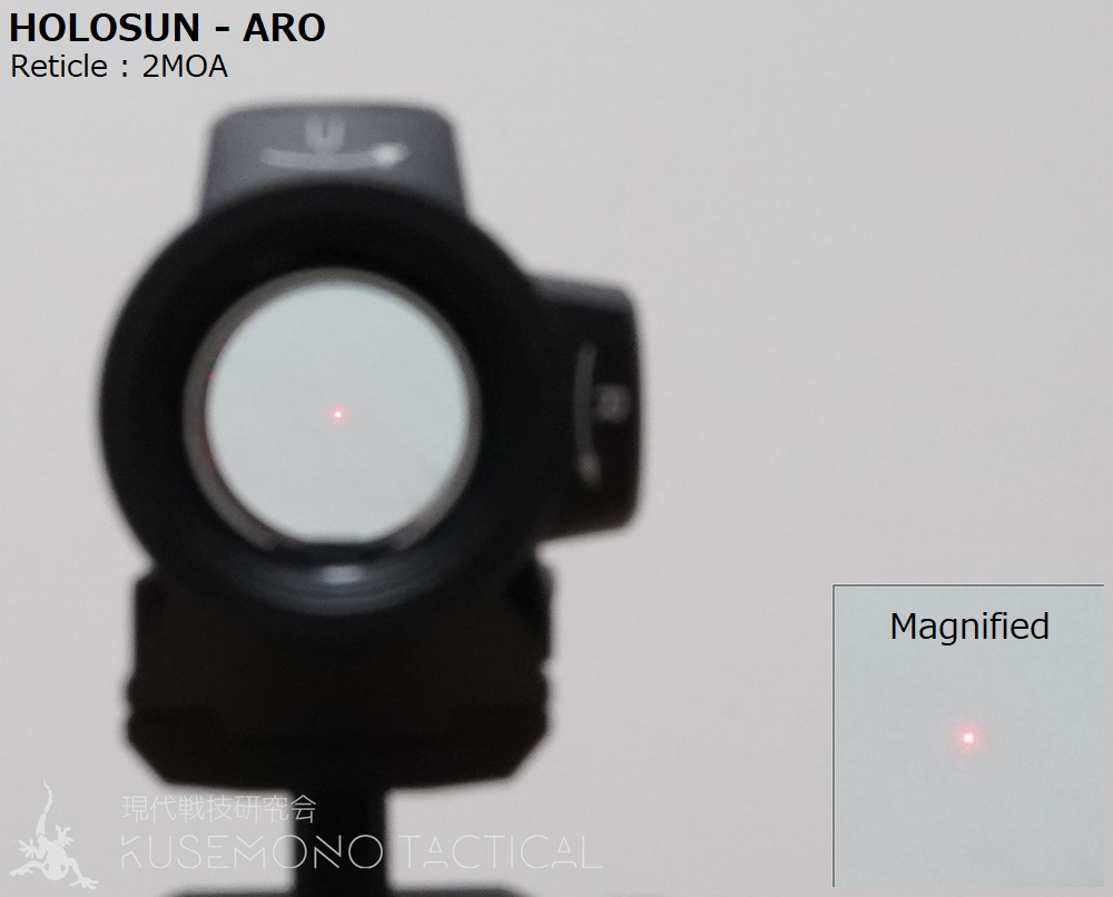 ●さて、かつてHS403Bは格安エントリーモデルながらAimpoint T2に迫るレベルの高い透明度のダットサイトとして人気だった。今回のAROはさらに磨きがかかっている。