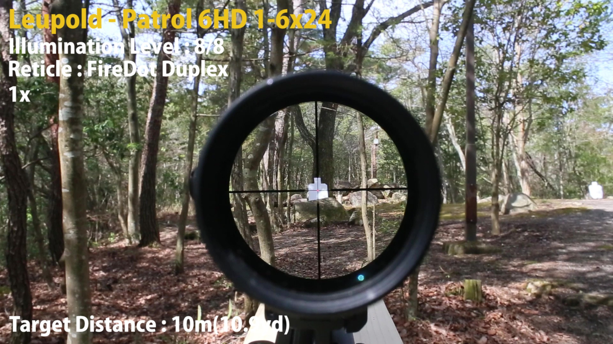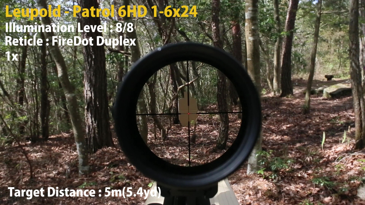 ●像のズレは写真のようにスコープと目がしっかりと正対していればシャキッと違和感無く見れるが、少し顔をずらすとレンズ周辺部で少し目立ってくる。この点はより安価なPrimary Arms – SLx 1-6のほうが優れているが、6HDのようにアイボックスが広めのスコープにはよく見られる現象ではある。私個人としてはそこまで気にはならない。